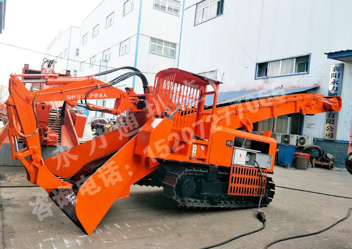 履帶扒渣機(jī)根據(jù)輸送方式有履帶皮帶扒渣機(jī)和履帶刮板扒渣機(jī)。若是巷道空間不大又分巷多可采用折尾型設(shè)計(jì)扒渣機(jī),機(jī)長縮短,靈活行走,轉(zhuǎn)彎半徑小。